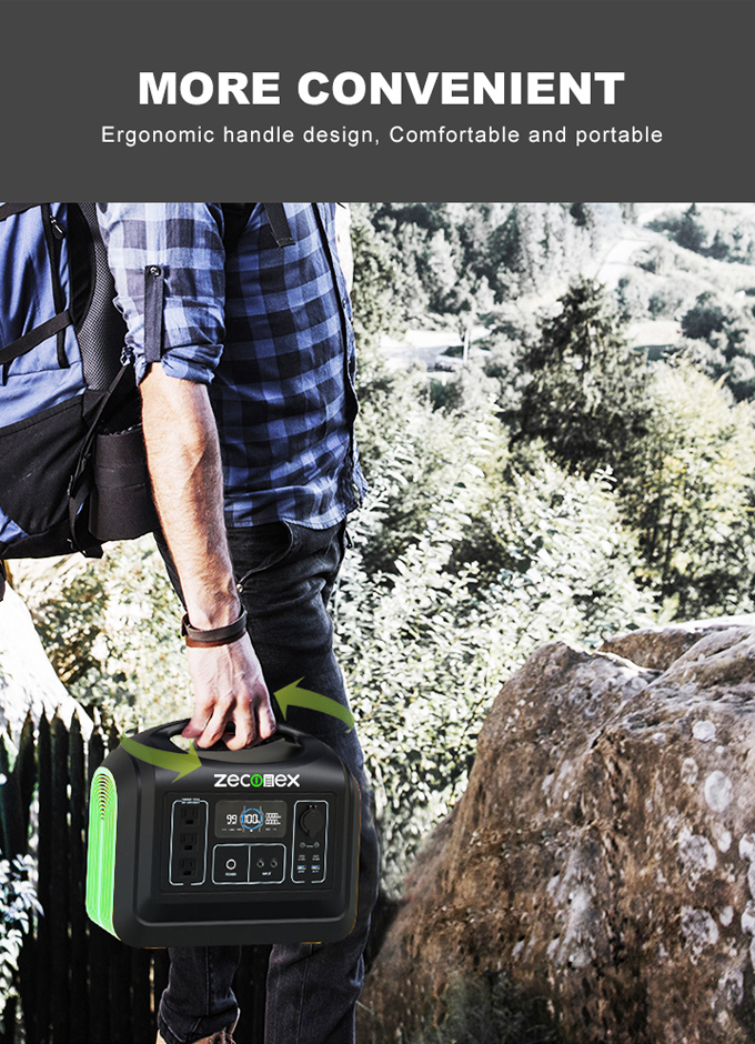 This portable power station is convenient for all outdoor activities. It features a solid handle for easy carrying and a built-in LED flashlight with SOS mode (long-press the button).